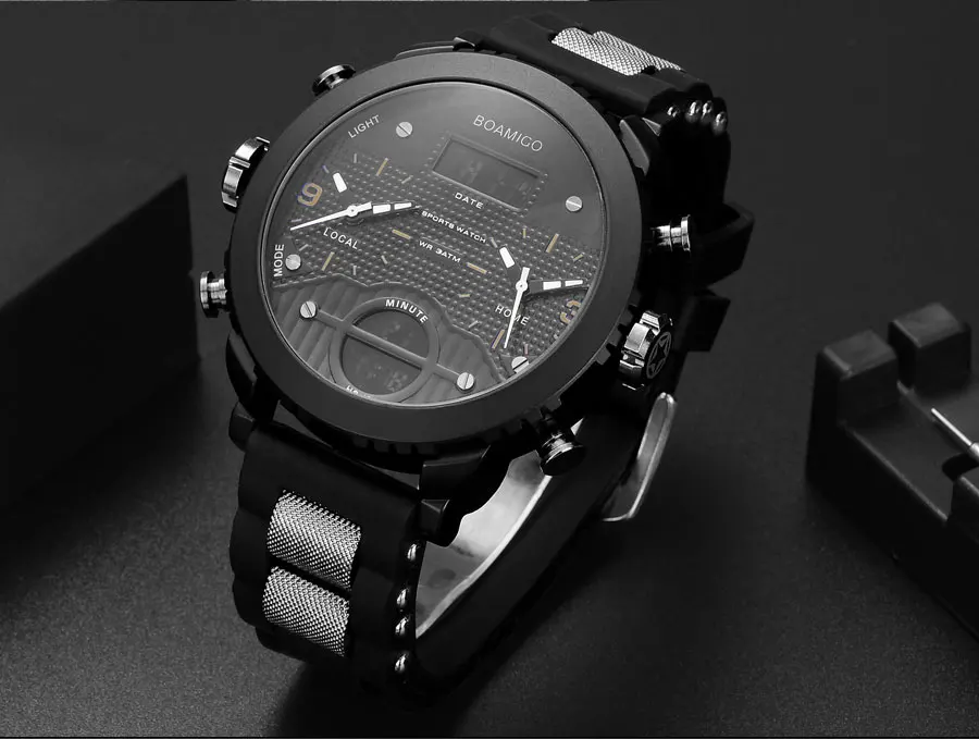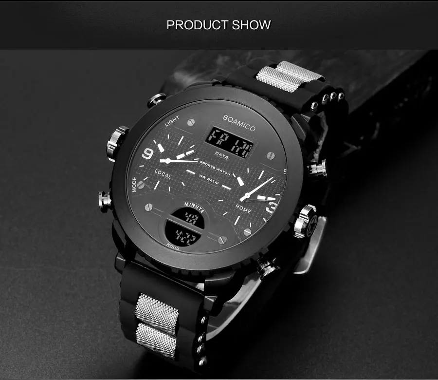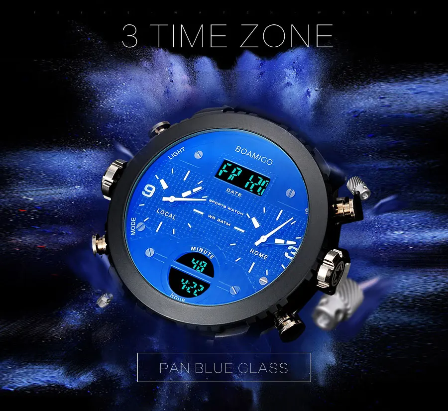 Feature:Stop Watch,Back Light,Shock Resistant,LED display,Auto Date,Complete Calendar,Multiple Time Zone,Water Resistant,Alarm,Week Display