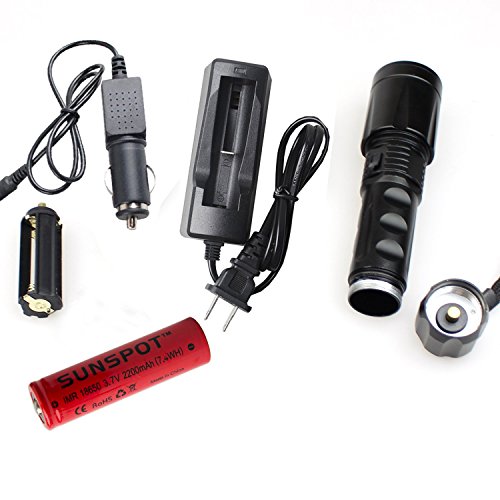 SUNSPORT 800Lm Zoomable CREE XM-L T6 LED Adjustable Focus Flashlight Lamp Light with 18650 Battery & 2 Chargers