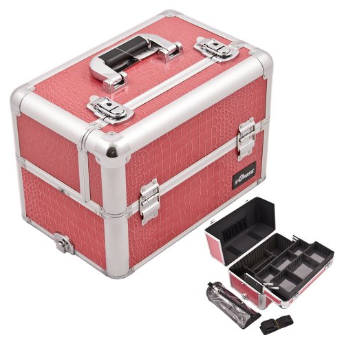 Casemetic Hot Pink Easy Slide Tray Crocodile Textured professional Aluminum Cosmetic Case With Brush Holder And Dividers