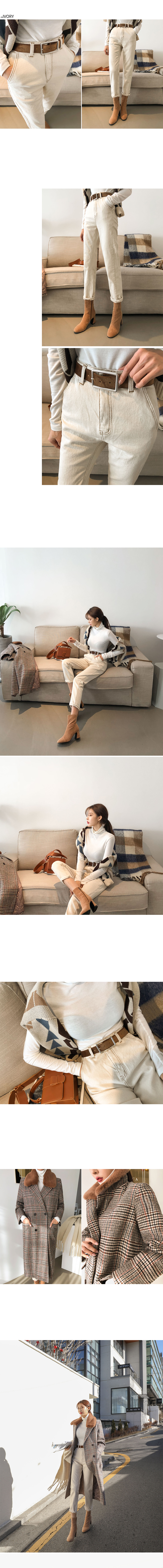 허리선 높게 올라오는 하이웨스트로 레그라인이한층 길어보이는 효과를 가져다 준답니다!스트레이트한 실루엣에 군더더기 없는