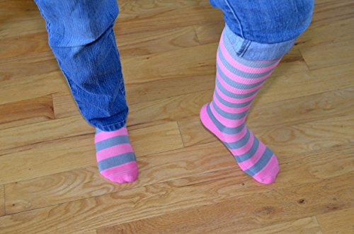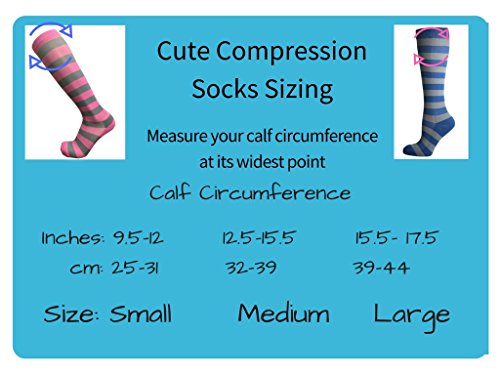 -. Feature : Cute compression stockings help prevent and lessen foot and leg pain and swelling / Cute compression socks 20-30 mmHg improve circulation and quicken recovery time / Compression socks for hiking, professionals, nurses, frequent travelers, etc. / Help control complications from: RA, POTS, MS, diabetes, pregnancy, post op, etc. / Compression stockings are comfortably perfect for anyone on their feet all day!