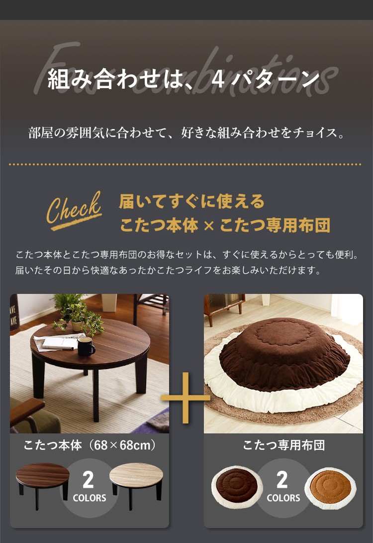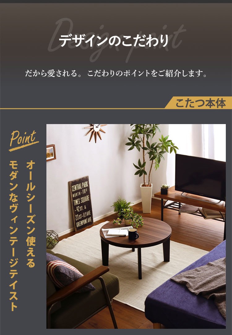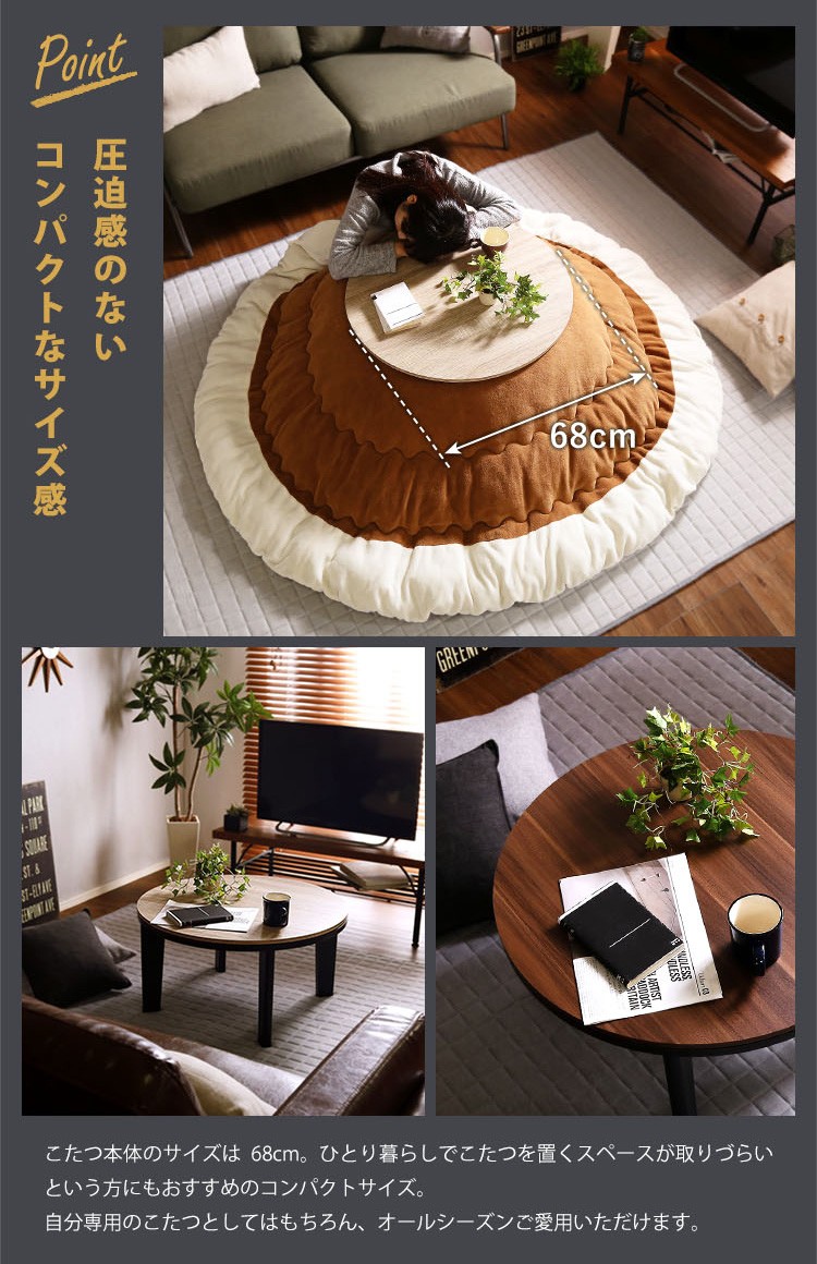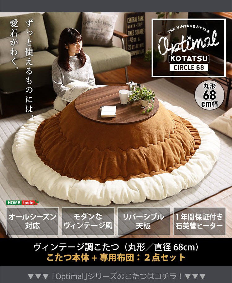 カジュアルこたつ ヴィンテージタイプ 石英管ヒーター付 68cm幅 丸型 【OPTIMAL -オプティマル-】シリーズ [CIRCLE 68] 肌触りが心地良い フリース生地 こたつ布団SET