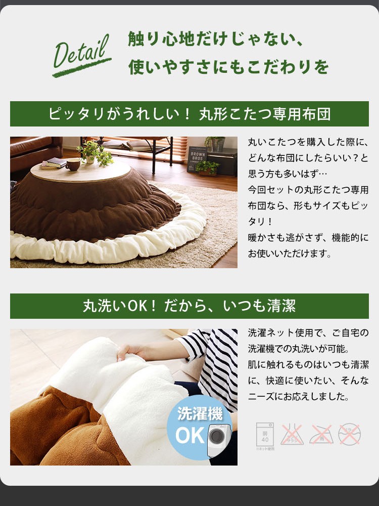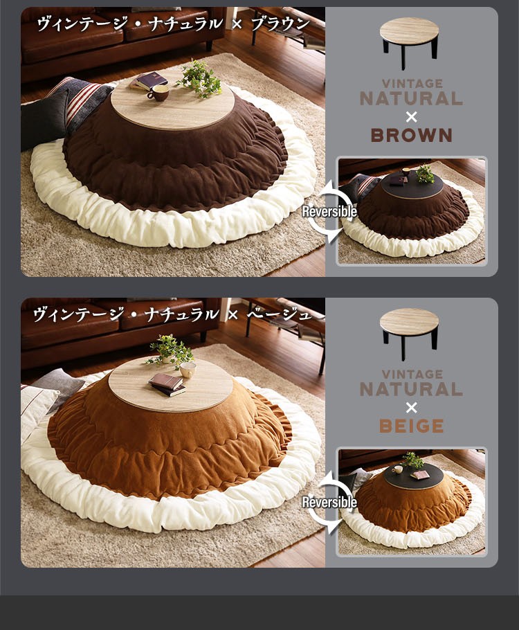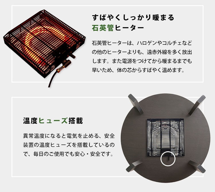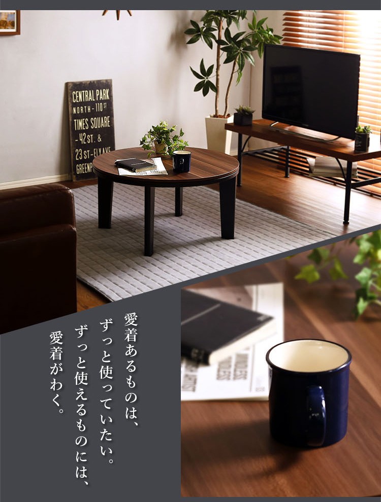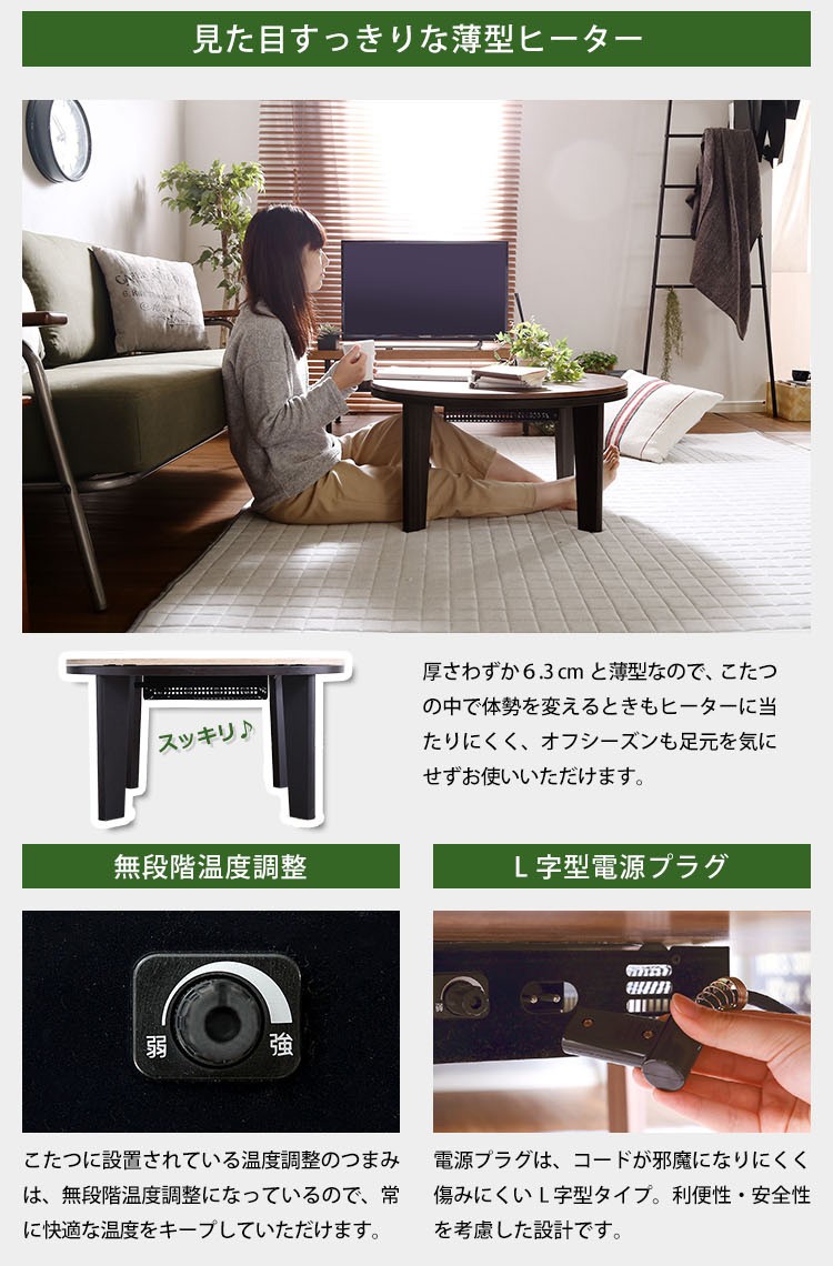 カジュアルこたつ ヴィンテージタイプ 石英管ヒーター付 68cm幅 丸型 【OPTIMAL -オプティマル-】シリーズ [CIRCLE 68] 肌触りが心地良い フリース生地 こたつ布団SET