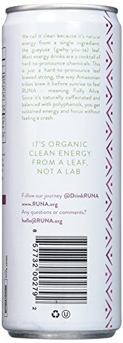 -. Binding : Grocery -. Brand : Runa Clean Energy Drinks -. Label : Runa Clean Energy -. Manufacturer : Runa Clean Energy -. ProductGroup : Grocery -. ProductTypeName : GROCERY -. Publisher : Runa Clean Energy -. Studio : Runa Clean Energy -. Title : Runa Clean Energy Guayusa Clean Drink