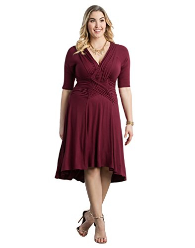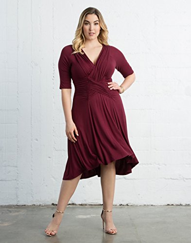 Binding : Apparel Product Description Feel flirty and fine in our flowy Refined Ruched Dress with a trendy hi-lo hem. With its surplice V-neckline, ¾ sleeves and ruched waist, you'll be draped in figure-flattering fashion for any day or night occasion. Available exclusively in women's plus sizes. 95% Polyester, 5% Spandex. We recommend hand washing in cold water with like colors and lay flat to dry. Do not bleach. Low iron when needed. Made with love in the U.S.A. 0