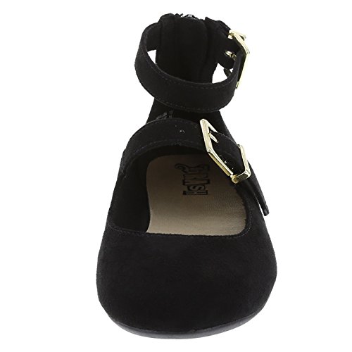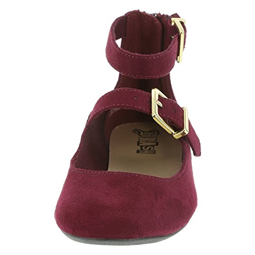 -. Binding : Apparel -. Brand : Brash -. Department : girls -. Feature : Faux Suede upper / Two adjustable straps to ensure a great fit--one over the vamp, the other at the ankle / Zipper at the heel / Lightly padded footbed / Available in whole sizes only -. Model : 079019-Parent -. ProductGroup : Shoes -. ProductTypeName : SHOES -. Title : Brash Girls' Kimber Buckle Flat