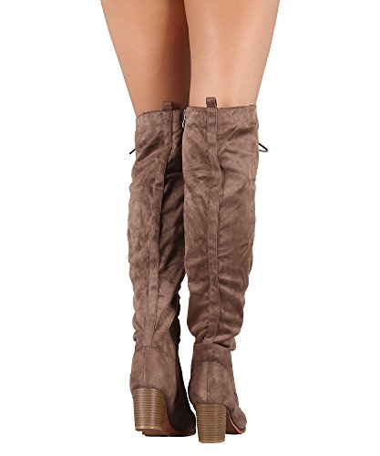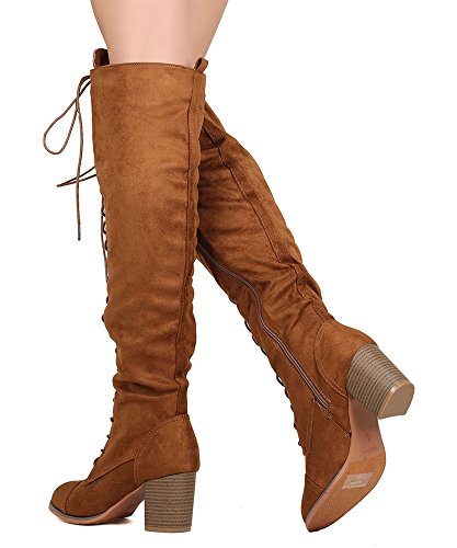 Product Description These stylish over-the-knee boots feature a vegan suede upper, lace up construction, almond toe silhouette, and chunky heel. Finished with a soft lining and side zipper fastener. 0
