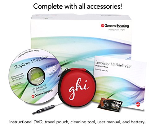 ReleaseDate : 2017-03-01 Studio : General Hearing Instruments Publisher : General Hearing Instruments Binding : Health and Beauty Product Description Hearing Aid - Simplicity Hi-Fi EP (Extended Play) refers to the advanced 100% Analog processing circuitry with an easy to use volume knob. Powered by the K-Amp analog circuit; producing an uncompressed natural warmer sound desired by most audiophiles and musicians. Created for sound quality in mind options such as feedback management are removed to protect the sound signal. As the #1 ranked Direct-to-Consumer hearing aids our sound quality is unmatched for natural sound production. Specifically designed for musicians with a Mild-to-Moderate High-Frequency hearing loss our products out perform sound amplifiers. The device does not amplify all sounds equally; we are shaping the sounds for the human speech frequencies giving you assistance right where you need it. Not only will speech sounds be improved, but also the richness of everyday sounds once as well. Simplicity Hi-Fi EP discreetly and comfortably fits behind the ear for both men and women. If this is the type of professional quality hearing help you are looking for, offered at an affordable price, then Simplicity Hi-Fi EP might be the perfect choice for you. Manufactured in the USA. Our friendly Customer Service team will gladly answer any questions you may have, call toll-free (877) 763-8327 8 a.m to 7 p.m. Central time Monday thru Friday. 0
