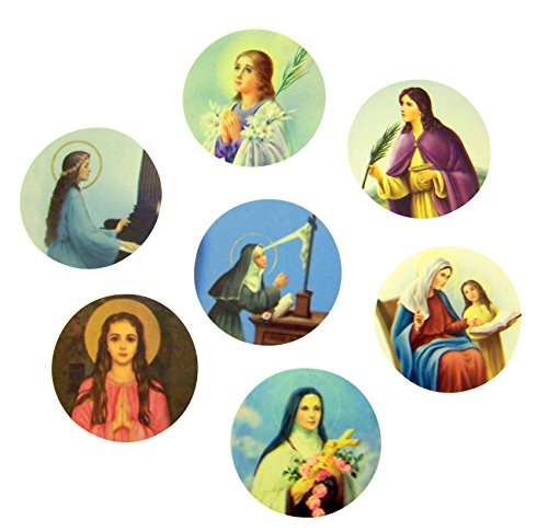 -. Title : Assorted Catholic Female Patron Saint Adhesive Stickers, Roll of 100