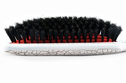Dianyi 100% Boar Bristle Hair Brush with Cushion Base Durable And Lasting Luxury Patent Leather Handle (White)