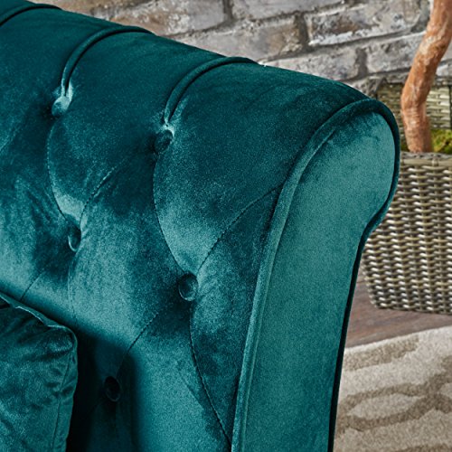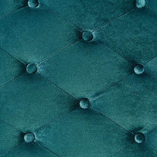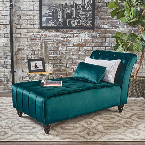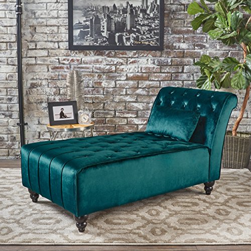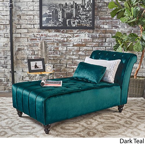 Be royalty in your own home with this plush lounge. Complete with a pillow and hand tufted elements, this chaise is a must have. The soft to touch velvet material only adds an extra reason to purchase this lounge. You will find yourself spending more and more of your time relaxing on this lounge, you may even decide that working from the chaise is the best way to be productive. The possibilities are endless. Product Details Includes: One (1) Chaise Material: New Velvet New Velvet Composition: 100% Polyester Leg Material: Birch Colors available in: Grey, Garnet, or Teal Leg Finish: Dark Brown Assembly Required Dimensions: 54.50"D x 28.50"W x 30.25"H Seat Width: 28.25" Seat Depth: 43.85" Seat Height: 16.00"Feature
