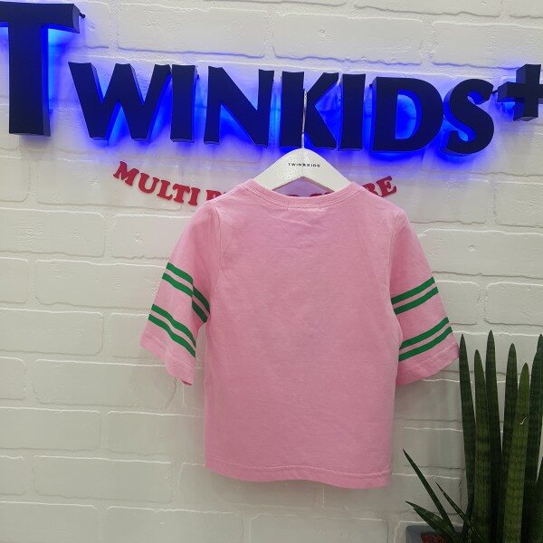 강연싱글7부 티셔츠로 시원하게 착용 가능하며,와이드 소매로 트렌디한 공용 티셔츠 알파벳 그래픽이 포인트