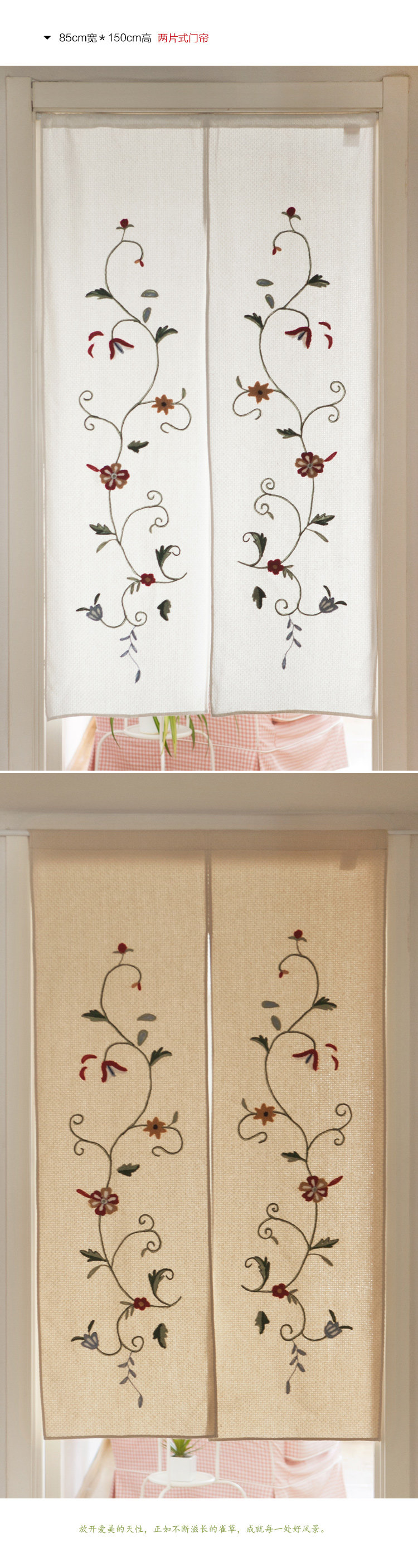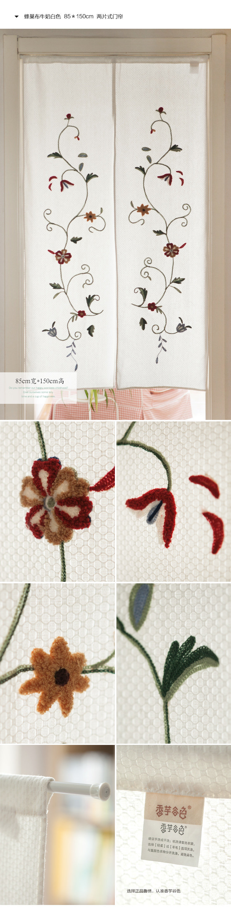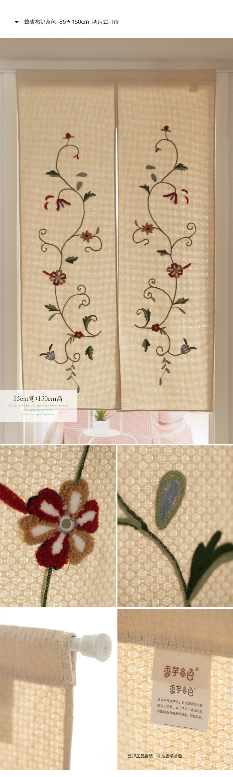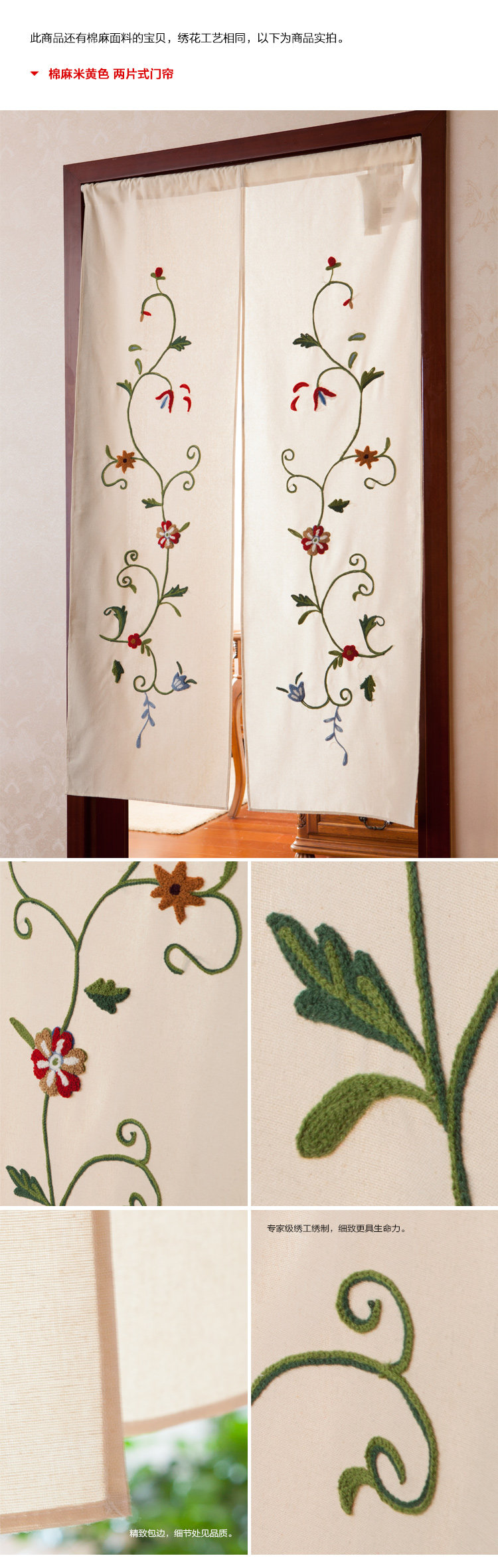 田园鲁绣布艺风水帘半帘 手工刺绣棉麻卧室门帘 香芋谷色日式隔断