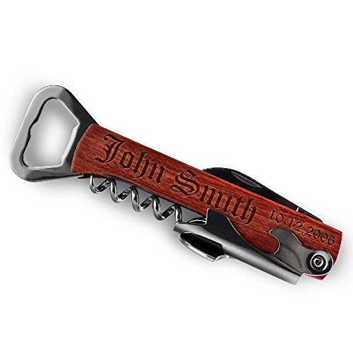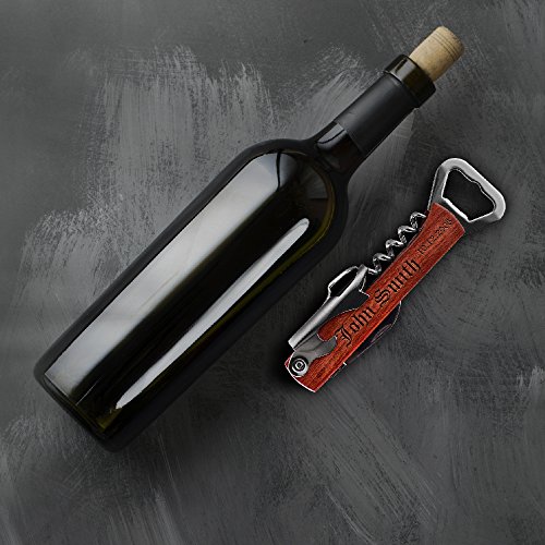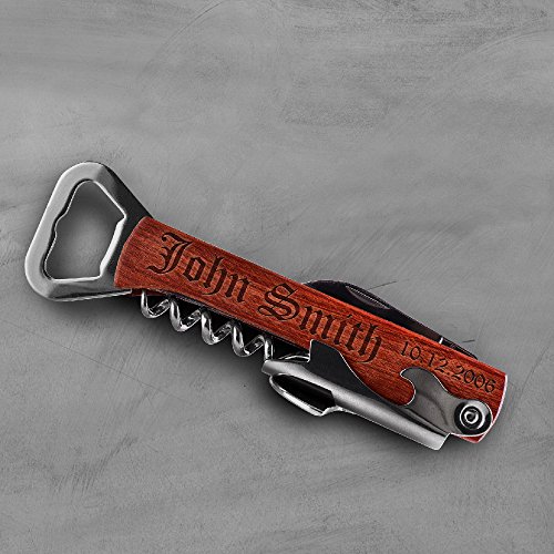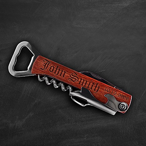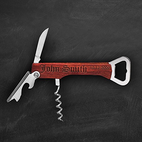 -. Title : Engraved Corkscrew and Multi-Tool Custom Wine Opener Personalized Bottle Opener
