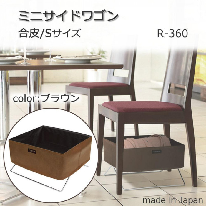 イス下のデッドスペースにも置ける1人用の手荷物入れです。 製造国:日本 素材・材質:袋部分/外側:合皮(PVC・ポリエステル)、内側:ポリエステルフレーム:スチール(表面クロームメッキ)底板:2.5mm厚低発泡ポリエチレン 商品サイズ:W37×H23(本体14)×D31cm 仕様:耐荷重:約3kg収納目安:1人分 ※サプライヤー直送品 ご注文後3~4営業日後の出荷となります【商品名】日本製 SAKI(サキ) ミニサイドワゴン 合皮 Sサイズ R-360 ブラウン
