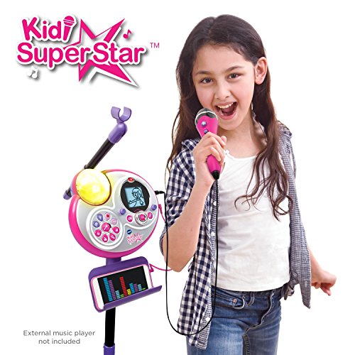 -. Binding : Toy -. Brand : VTech -. EAN : 3417761785003 -. Feature : Sing to your favorite tunes with this Award Winning Musical Toy. VTech Kidi Super Star is awarded Toy of the Year 2016 / Grand Prix du Jouet 2016 in France, and elected as Xmas Present Guide 2016: Top Ten Presents in United Kingdom. Sing along to all your favorite songs via a 3.5mm jack iPod/MP3 connection. Record yourself singing up to 5 minutes and add in different sound effects / Remove the main vocal track of your songs using the amazing Music Magic feature. Change the sound of your voice with the cool built-in microphone effects / Comes with a built-in colorful disco light with various styles that you can choose. Includes fun rhythmic games and tongue twisters / Includes also one microphone, one 3.5mm jack audio cable, one microphone stand with 3 poles to adjust height from 28.5 to 53.5 inches / This interactive karaoke system can be detached on table top and is intended for kids 4 to 9 years old; 4 AA batteries are required and included for demo purposes. Unit can also be powered by 7.5V 400mA adapter (sold separately) -. IsAdultProduct : 0 -. Label : VTech -. Manufacturer : VTech -. MPN : 80-178500 -. PackageQuantity : 1 -. PartNumber : 80-178500 -. ProductGroup : Toy -. ProductTypeName : TOYS_AND_GAMES -. Publisher : VTech -. Studio : VTech -. Title : VTech Kidi Super Star Karaoke System with Microphone and Mic Stand - 2017 Online Exclusive
