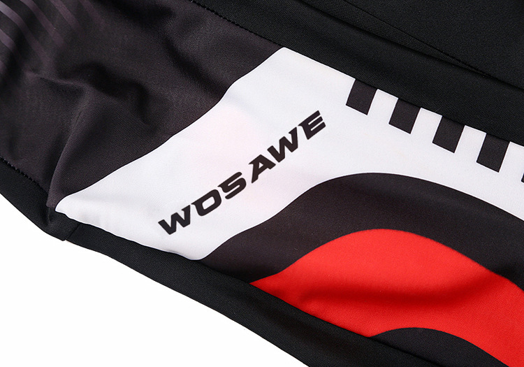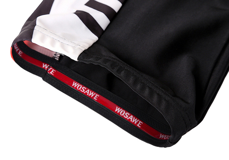 Silicone Hem; WOSAWE logo silicone band, can provent skin allergy and the cloth upglide during riding very well.