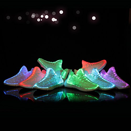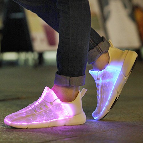 -. Feature : A STUNNING GIFTING IDEA! amazing pair of LED shoes as an unforgettable gift! / 11 shine modes, white SIKAINI glow shoes will add color to your daily or special moments! / Light up shoes for women Feather-light, breathable, soft and comfortable, these NOVELTY led sneakers for women and kids are made from FIBER OPTIC and WATERPROOF soles, offering unique COMFORT / INNOVATIVE ILLUMINATED FABRIC! Unlike most led flashing shoes on the market that have LED lights in the sole, our glowing shoes are FULLY illuminated on the TOP, as the see-through fabric lets light come through! / FAST CHARGING & LONG-LASTING! Charge the rechargeable battery in 2-3 hours with the CHARGING CABLE included and light up your steps for full 9 hours!