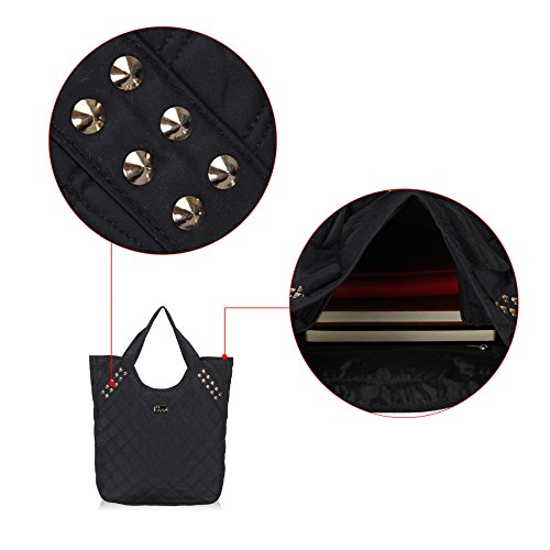 -. Brand : Hynes Eagle -. Color : Multicoloured -. Department : womens -. Feature : Approx Dimension: 15.7 x 15.7 x 3.9 inches; Top handle drop: 7.9 inches / Stylish exquisite rivets decoration and quilted pattern, suitable for all seasons / 1 Large compartment with interior zip pocket which have an enough space to hold daily necessities / 1 back zip pocket is easy access to gadgets / Perfect to take from work to the gym or other occasions -. ProductGroup : Apparel -. ProductTypeName : LAGE -. Size : Medium -. Title : Hynes Eagle Women Quilted Tote Bags