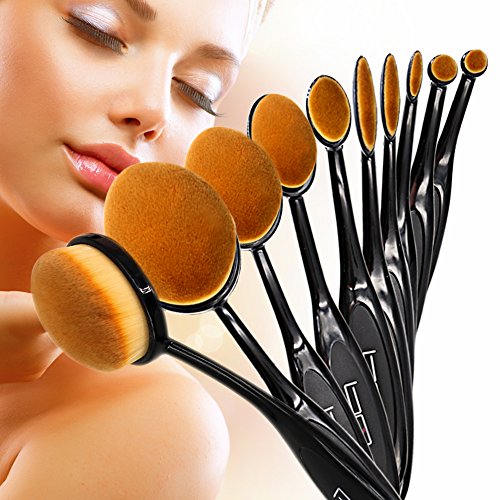 -. Title : Brush Master New 10 Pieces Oval Toothbrush Makeup Brush Set Foundation Contour Powder Blush Concealer Eyeliner Blending Brush Cosmetic Brushes Tool Set With Travel Holder Organizer Case