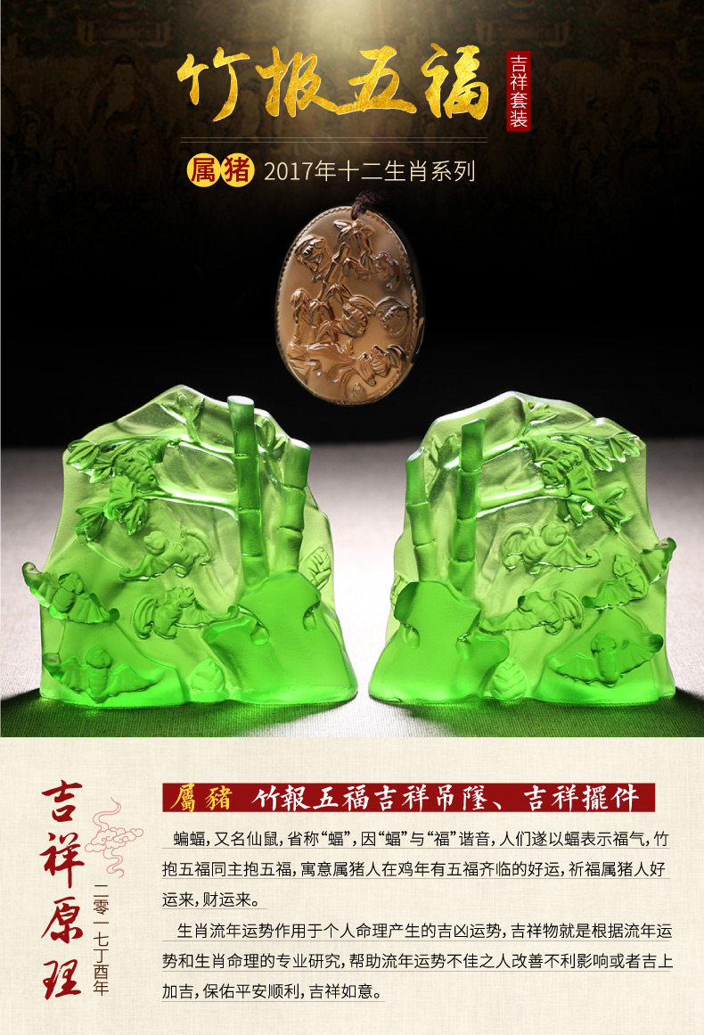 属猪人可以佩戴【鼎风阁竹报五福】玉坠保个人平安顺畅,竹轻盈细巧、四季常青,竹通猪,代表属猪人鸡年充满生机和活力,竹自古有清高和有节的含义,其刚劲清新,生机盎然,蓬勃向上,可保属猪人鸡年冲破雾霭,吉祥安康,活力无限,事业节节攀升。竹林生长在山石间,寓意稳固的地位,林中或飞或栖着五只蝙蝠,喻示长寿,富贵,康宁,好德和善终五福,寓意属猪人五福临门,财源滚滚。大大增加属猪人家运宅运,事业顺畅,平安如意。昆仑白玉亦为世间名器,可保平安,增运添财,配合【鼎风阁三合莲花】项链使用效果更佳。