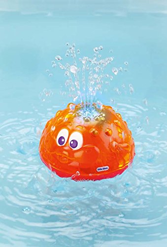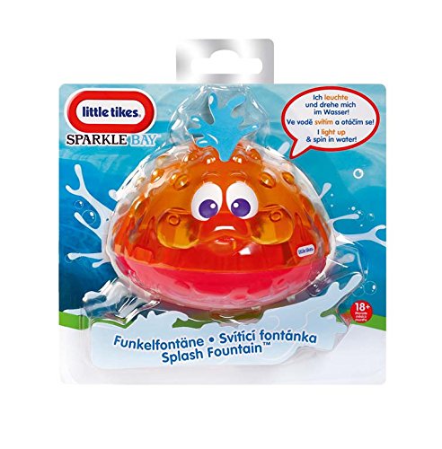 -. Binding : Toy -. Brand : Little Tikes -. EAN : 0783318249346 -. Feature : Adorable Blow Fish water toy sprays water just like a fountain / Spins and lights up when placed in water / Friendly character that toddlers will love / Collect all of the Sparkle Bay Flicker Fish water time friends -. IsAdultProduct : 0 -. ItemPartNumber : 638299M -. Label : MGA Entertainment -. Manufacturer : MGA Entertainment -. Model : 638299M -. MPN : 638299M -. PackageQuantity : 1 -. PartNumber : 638299M -. ProductGroup : Toy -. ProductTypeName : TOYS_AND_GAMES -. Publisher : MGA Entertainment -. ReleaseDate : 2015-08-01 -. Studio : MGA Entertainment -. Title : Little Tikes Sparkle Bay Splash Fountain Water Toy - Blow Fish -. UPC : 093652924244 -. Warranty : 90 day warranty against manufacturer defects