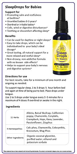 ReleaseDate : 2014-02-06 Studio : Sleep Drops Publisher : Sleep Drops Binding : Health and Beauty Product Description SleepDrops for Babies is an easy to use liquid formula containing all natural ingredients of herbs, homeopathy and flower essences in a base of purified water and organic coconut glycerin. It has been professionally formulated to support the main reasons why your baby may not be sleeping, including; being overtired, adjusting to new environments, change of diet (liquids to solids) and inability to self-settle or self-soothe. SleepDrops for Babies is of exceptional quality - made from high quality ingredients under strict GMP regulations to ensure an end-product of the highest standard. 0