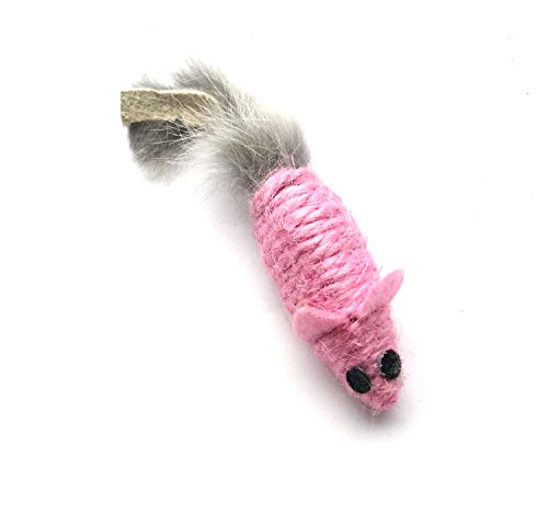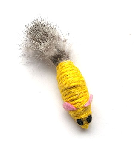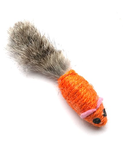-. Feature : Sisal Rope Mouse Cat Toys with Real Rabbit Fur Tail - Nice Quality! / Black felt fabric ears, eyes and nose, 100% Real Rabbit fur tail / No RATTLE Sound, about 2 inches long / 3 Pack - 1 Orange, 1 Pink, 1 Yellow / Easy, fun and durable toys for your cat to toss, grip and scratch.