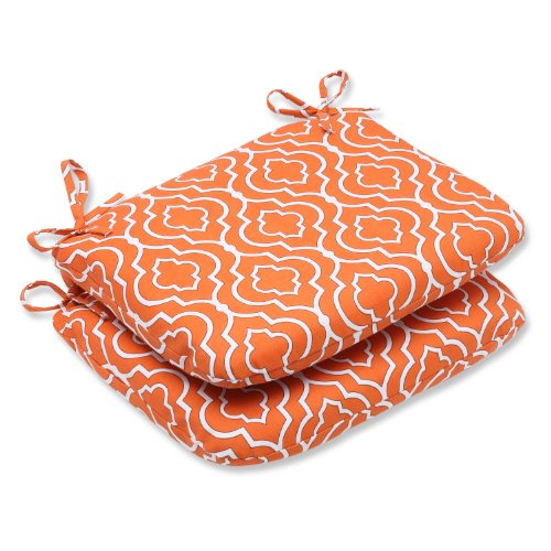 Relax in style and comfort on this set of weather and UV-resistant outdoor seat cushions with rounded corners. Infused with an orange quatrefoil pattern, these seat cushions include a new and improved polyester fiber filling, which offers an even cushier feel and greater durability.