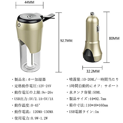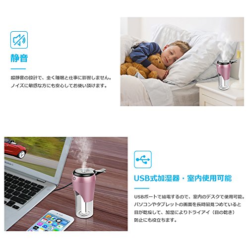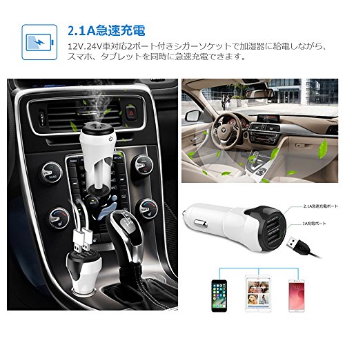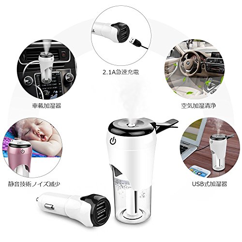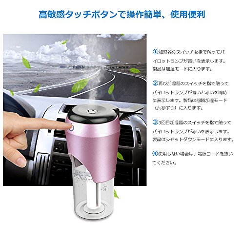 Car humidifier evaporative small USB humidifier rapid charging 2-port USB car charger USB mini humidifier aroma humidifier mode switching function air conditioning blow-out port mounted low noise empty-fired anti-Goodlight (Pink)