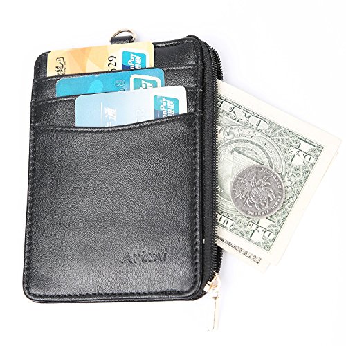 Womens Wallet Slim Card Holder Leather Card Case with Zipper Pocket