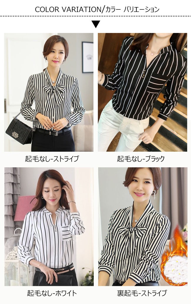 | 商品名 | 裏起毛 シフォンシャツ シフォンブラウス レディース 暖かい 裏ボア リボン付き トップス インナー オフィス 長袖 ストライブ 通勤 就活 OL 春 2018春新作 |