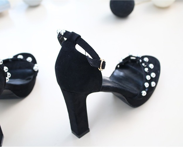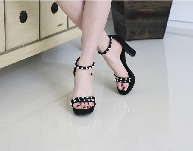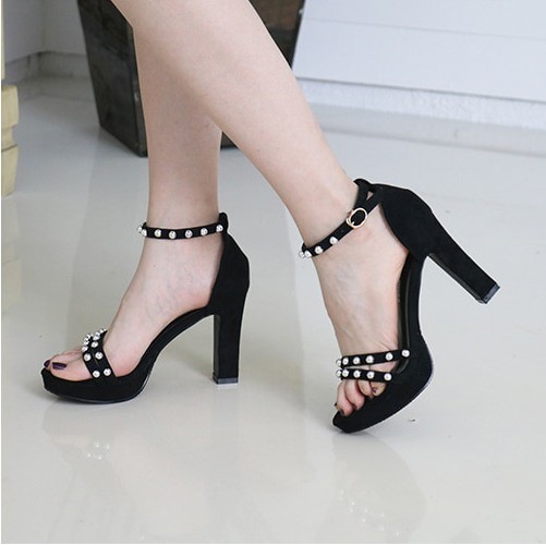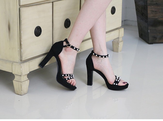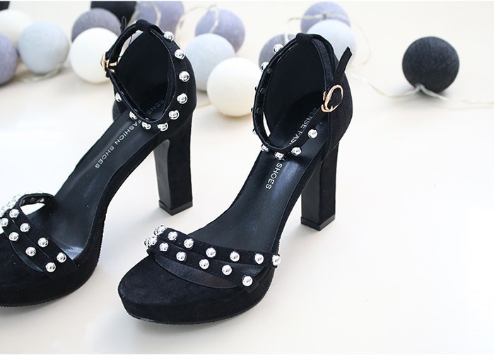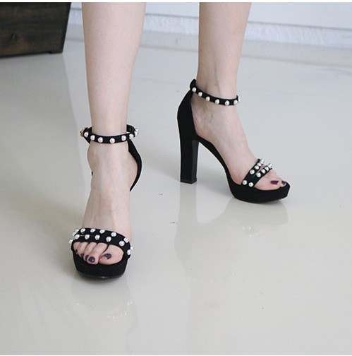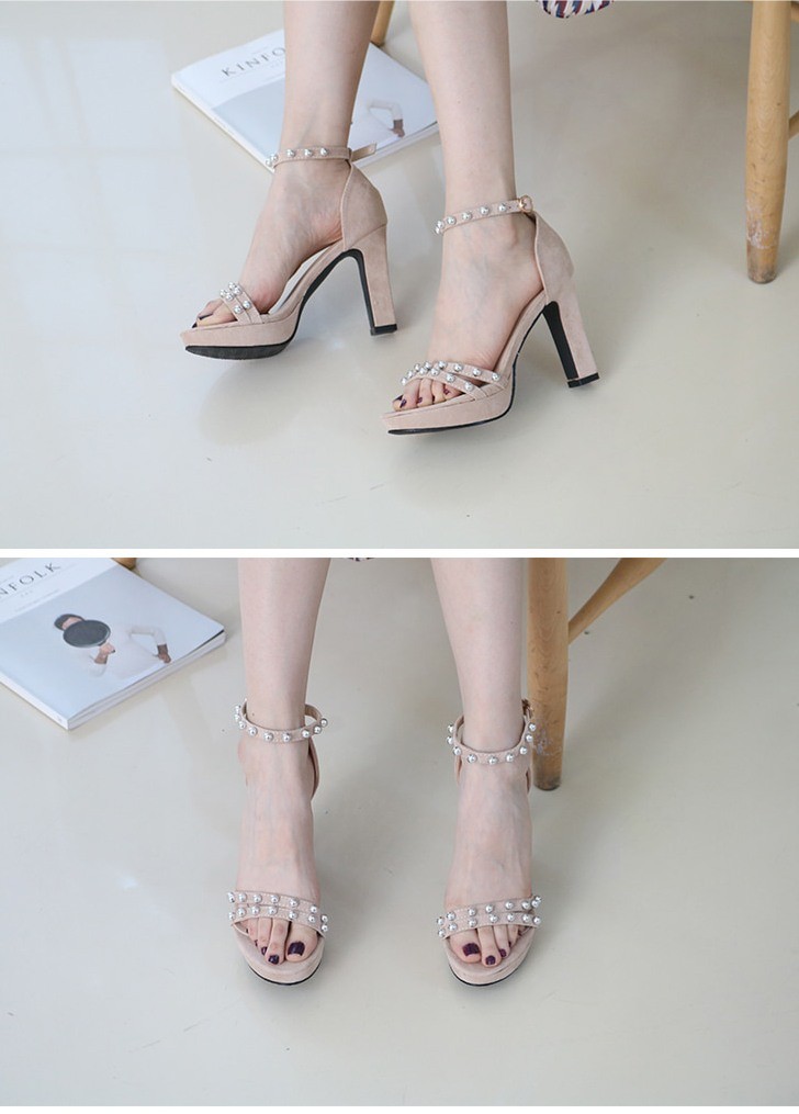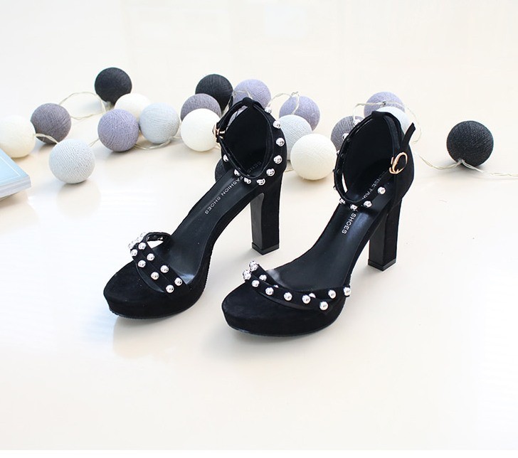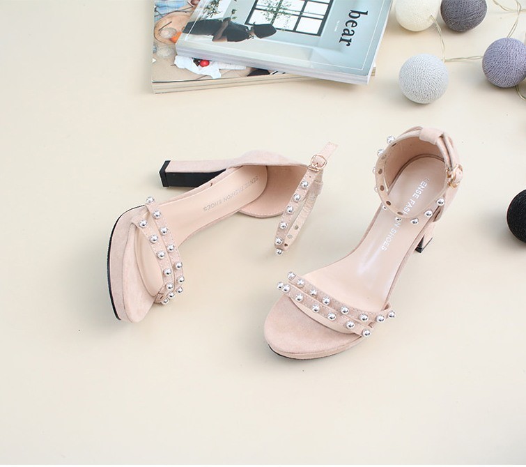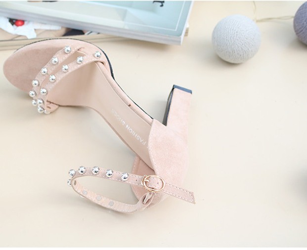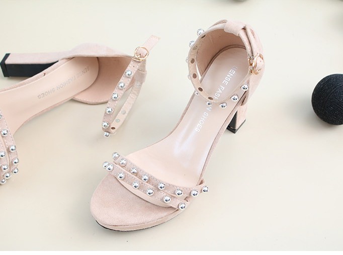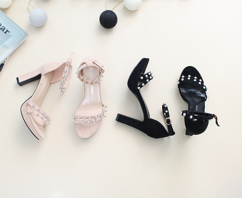 商品名:サンダル レディース 太ヒール チャンキーヒール アンクルストラップ ビジュー 2018 春 ファッション 靴 婦人靴