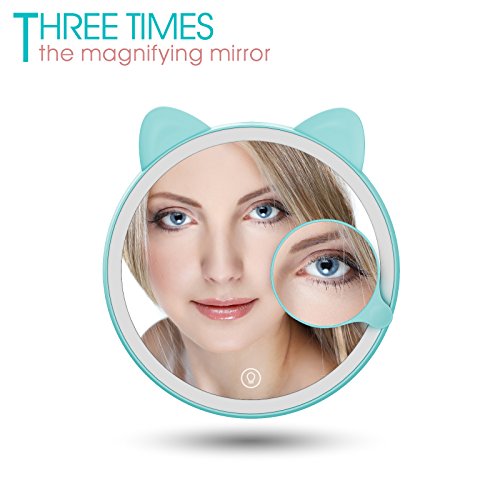 RETECK Makeup Mirror with Lights, Led Light Touch Screen Lighted Vanity Mirror with 3X magnification with Cool Warm light Fox,Mint