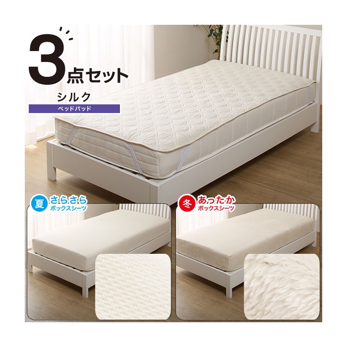 원본상품명: ベッドパッド&ボックスシ?ツ3点セット 洗濯ネット付き ダブル(シルク3テンセット IV D) 送料無料玄?先?納品