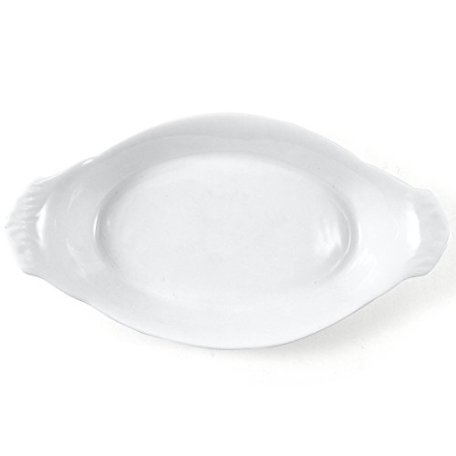 Studio : Omniware Publisher : Omniware Product Description Bake and serve beautiful and delicious side dishes and desserts in this Au Gratin dish from Omniware. Made from white glazed porcelain, this dish displays a classic and elegant design. This dish features a wide flat area to perfectly crisp the topping for your dish and the two helper handles make transport from kitchen to table easy. It is also microwave safe and dishwasher safe, making clean up a breeze. 12-3/4" L 0