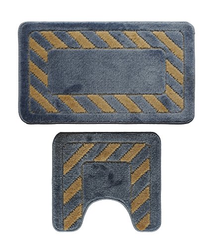 Attraction Design Bathroom 2 Pieces Bath Rug Pedestal Mat Set Contour and bath mat Tan