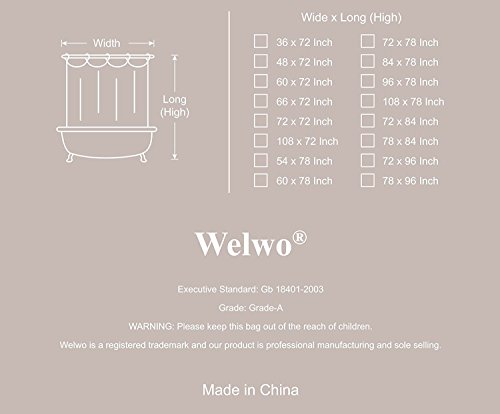Shower curtain set includes: 1x plastic bag + 1x shower curtain + free plastic shower curtain rings_hooks, Not Included: shower curtain rod. Welwo IS A REGISTERED TRADEMARK AND OUR PRODUCT IS PROFESSIONAL MANUFACTURING AND SOLE SELLING BY SusansuShop.