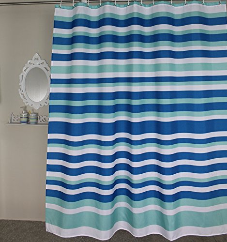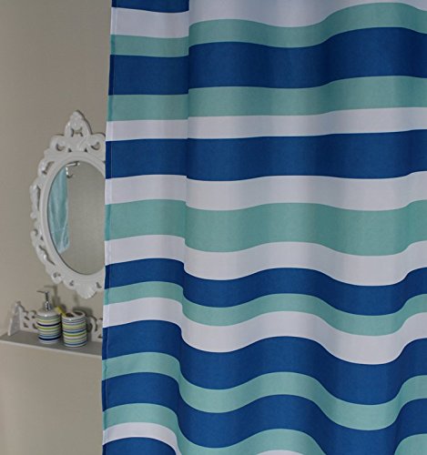Stall Shower Curtain, Welwo Mildew,Mold Resistant Fabric Small Shower Curtain Liner,Set Waterproof & Antibacteral Designed with Curtain Hooks - 36 x 72 inches, Blue White Green Horizontal Stripeed