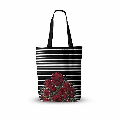 KESS InHouse Tobe Fonseca "Spring Pattern Lines Red" Red Black Mixed Media Everything Tote Bag, 13" x 13", Multicolor
