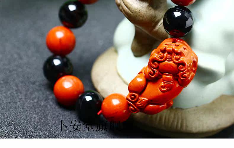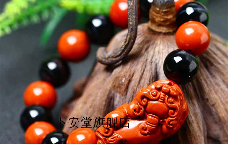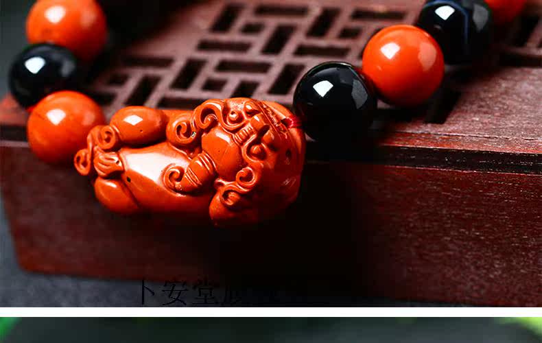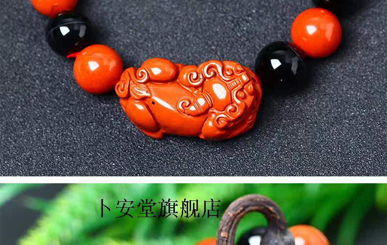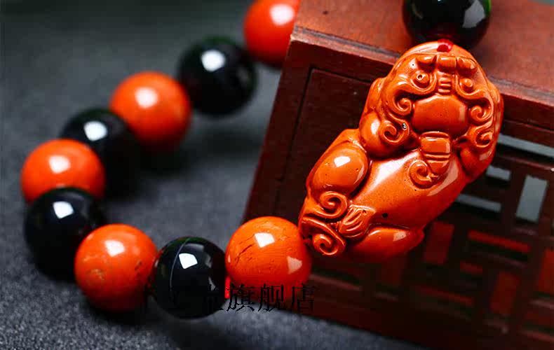 开光天然红竹石影子石貔貅手链男款红竹石石碑石手链