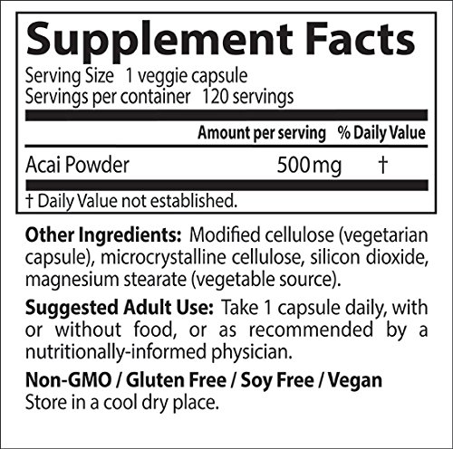Studio : Doctor's Best Publisher : Doctor's Best Binding : Health and Beauty Product Description Acai supports overall well-being by fighting free radicals that can a ect the heart, joints, and immune system. Acai is a small purple berry from the Amazon Rainforest, found to be one of the most nutritious and powerful foods on the planet. It is a powerful antioxidant with natural flavonoids.* Ripe Acai fruits are harvested at their peak preserving the wholesome goodness of the entire fruit, including the important anthocyanins. This ensures that our Acai powder retains powerful, beneficial antioxidant properties, which serve to promote cellular health.* 0