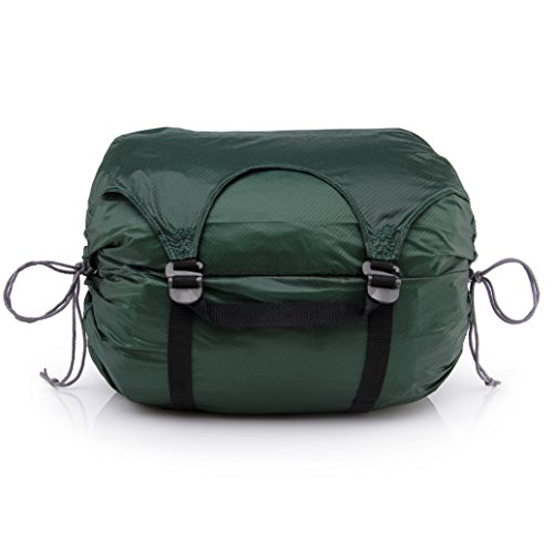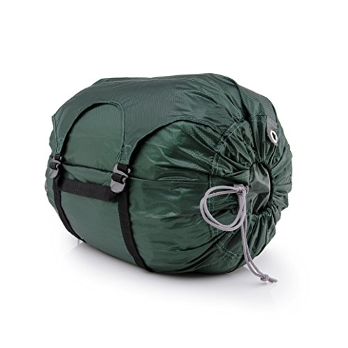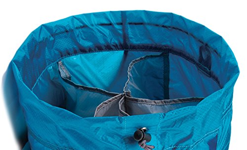 -. Feature : Storage pouch with zipper / Anodized aluminum buckles / 5 Interior compartments / Drawstring closure on either end / Tall draft collar for a tight seal