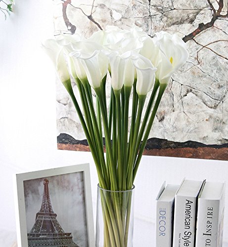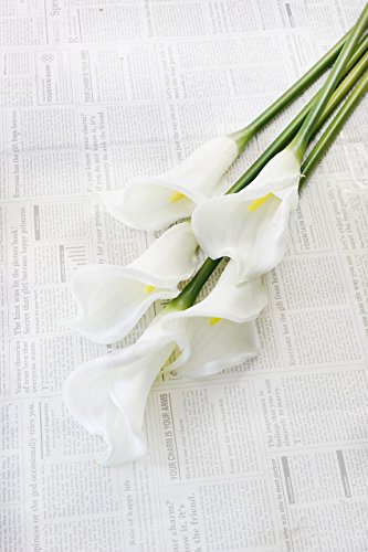 25" LARGE Handmade Real Touch Latex Calla Lilly artificial spring flowers for arrangements, bouquets, weddings, and centerpieces (Pack of 5) (Milky White)