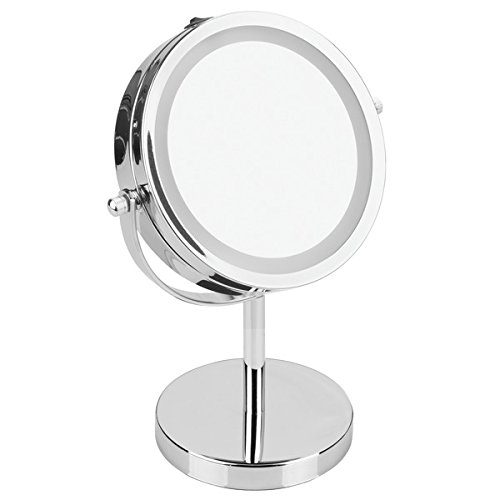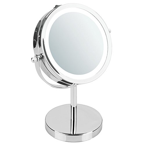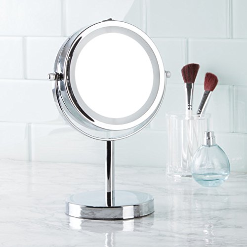 mDesign Lighted Free Standing Vanity Makeup Mirror for Bathroom Countertops - Chrome