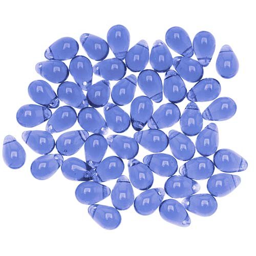 Czech Glass Beads 9mm Teardrops Light Sapphire (50)