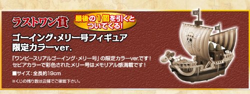 最後のくじを引くとその場でもらえるラストワン賞は、 2012年7月にアミューズメント専用景品で登場した 「ワンピース リアルゴーイング・メリー号」を、 セピアカラーで彩色した限定カラーver.です。