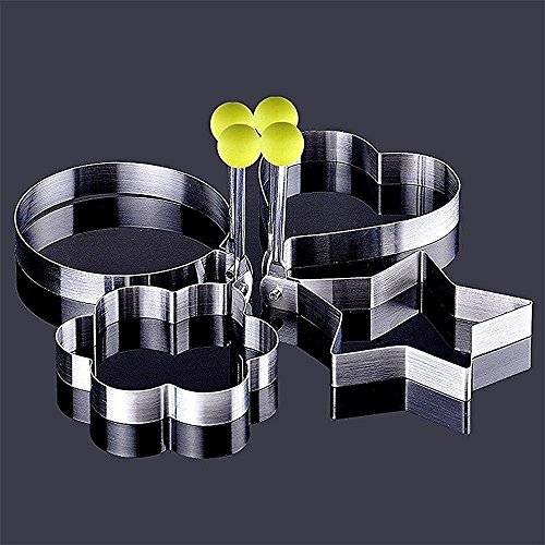 Studio : Labellevie Publisher : Labellevie Product Description Specifications: 1. Material: Stainless Steel 2. Color: Silver 3. Quality: 4 PCS 4. Heart Shape: 10.3*8.7*1.5cm 5. Round Shape: 10.5*8.8*1.5cm 6. Flower Shape: 10.2*8.8*1.5cm 7. Star Shape: 10*8.7*1.5cm 8. Single weight: about 30g Features: 1. Humanized plastic handle pulling, anti hot not injured. Compact and durable with enduring performance. 2. Food grade stainless steel ring, not high temperature deformation, healthly and safety. 3. Rotary handle design, easy to control and use. Easy to store after using. Scope: Fried egg, Cakes, Meatloaf, Biscuits and so on. Benefit: 1. Have a lovely omelette, a fried egg will be filled with fun. 2. A warm and loving breakfast will make you and your family energetic all day. 3. loving and funning breakfast, let the child more like, no longer worry for his anorexia. Instructions: 1. Pour a little oil heating pot. 2. Put the mold down the pot. 3. Small fire slow fry, don't be too fast. 4. Beautiful egg shape is completed. Note: During omelette, cakes, biscuits, patties, when frying eggs, it can be first coated with a layer of oil before using the mold, easy to release eggs after forming, convenient to take out. 0
