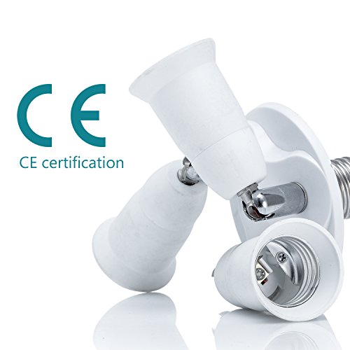 JACKYLED 3 in 1 Light Socket Splitter E26 E27 Adapter Converter for Standard LED Bulbs 360 Degrees Adjustable 180 Degree Bendable Max Watt 300W