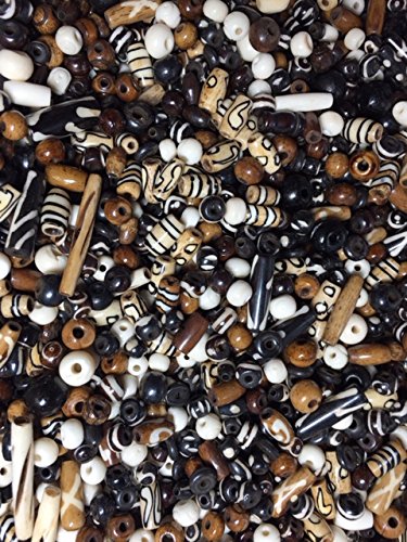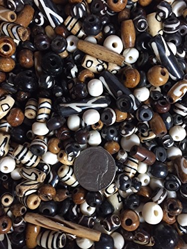 40-45 Pieces (75 Grams) 6mm to 18mm, Natural Buffalo Bone Beads, Native American Art Work, Etched Beads Black, Brown, Free Shipping in USA